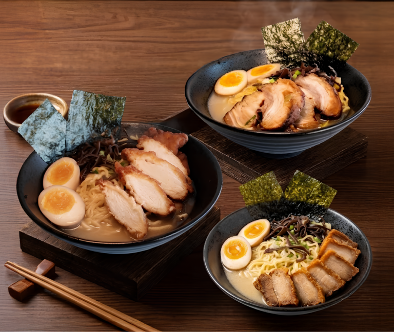 Velvety pork bone broth, melt-in-your-mouth crispy pork belly, wood ear mushrooms, and a soft-boiled egg. Soul-warming, creamy.